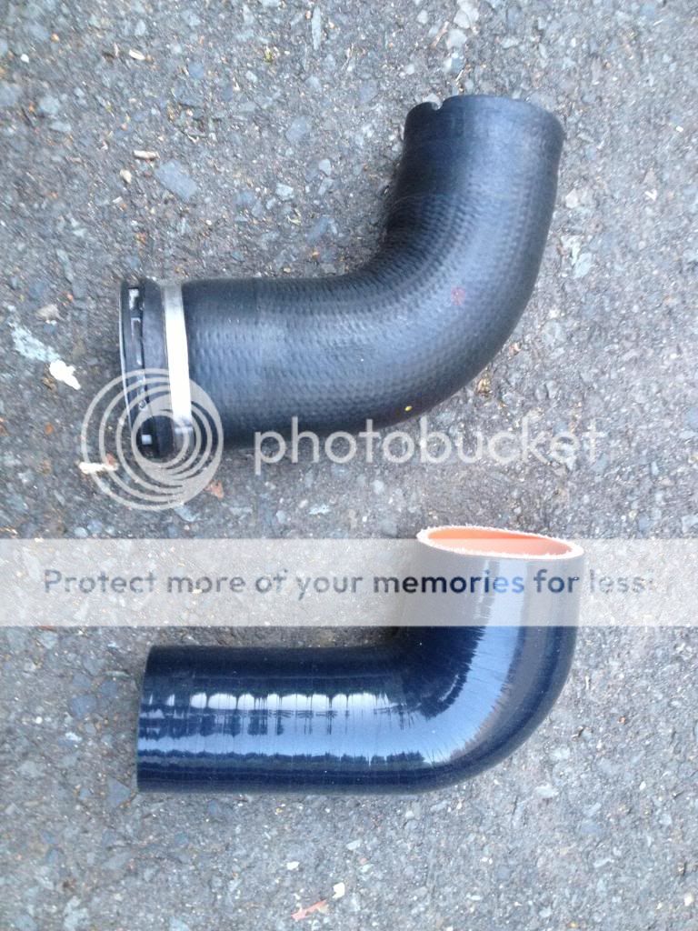 Hope it fits... the stock tubing is weird (where the charge pipe connects to the intercooler piping) there is a 2.5" nib. Hopefully the silicone piping goes over it... or hopefully I'll have enough meat of clamp the silicone pipe behind it.